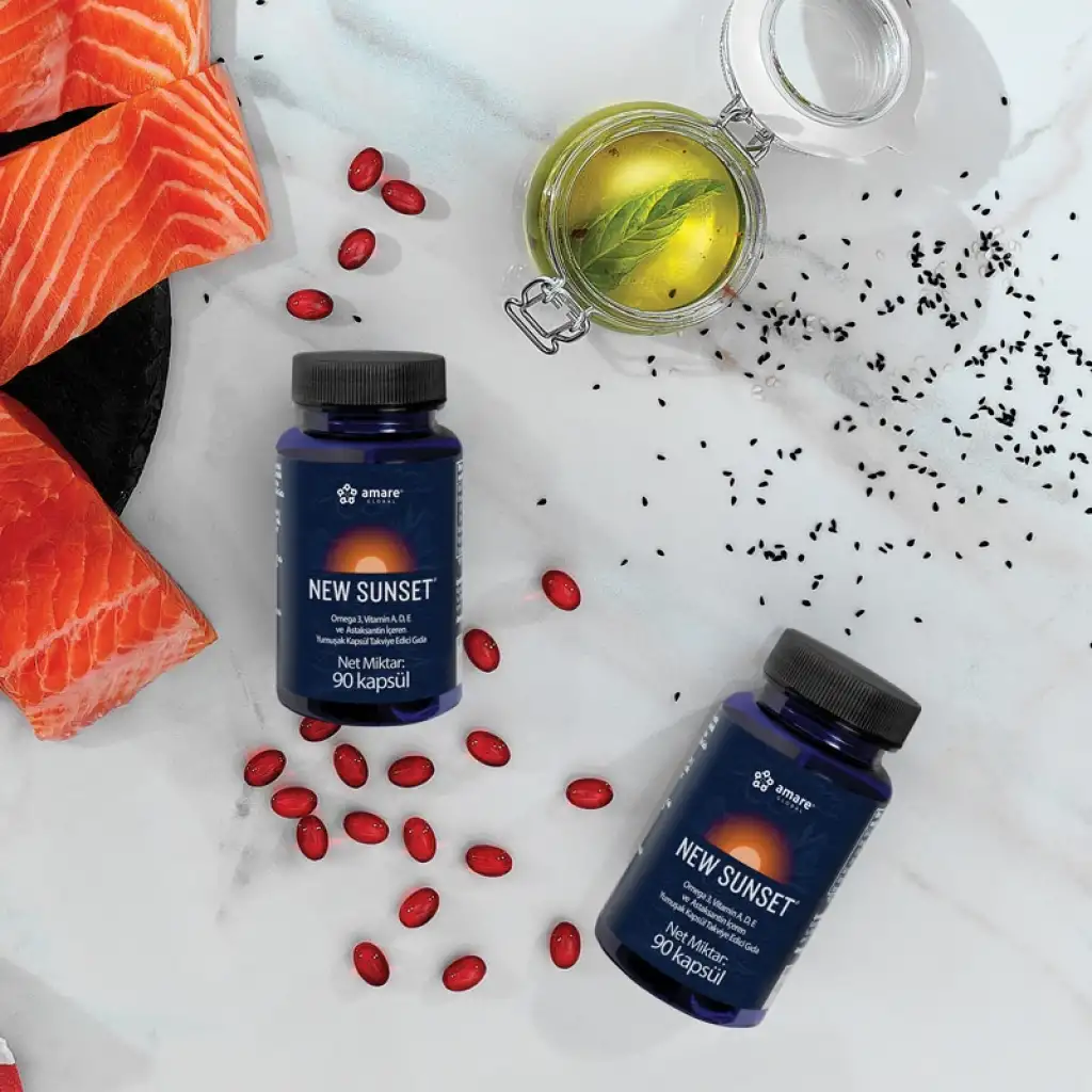 Beslenme şeklimiz değişebildiği için her gün gerekli besinleri alıp almadığımızı bilmek zordur. Bazı besinler doğada kolay bulunmaz ve bulunduklarında ise az miktarlarda bulunur. Omega-3, balıklarda bulunan önemli bir besindir ama düzenli beslenme rutini tavsiyelerinde önerildiği gibi haftada iki kez balık tüketmek, her zaman mümkün olmayabilir. Sunset, E Vitamini, Omega-3 yağ asitleri (EPA-DHA), Astaksantin, A Vitamini, D3 Vitamini gibi beslenme rutinlerimizde olması gereken doğal, lipid - çözülen besinler