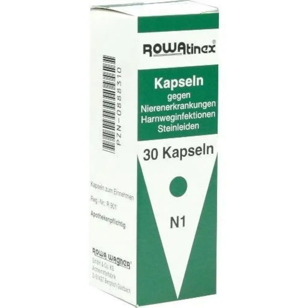 Rowatinex, Zeytinyağı (33 mg), Pinen (31 mg), Kafur (15 mg), Borneol (10 mg), Fenkon (4 mg), Anetol (4 mg) ve Sinol (3 mg) gibi temel bileşenler içeren, idrar yolu taşları ve enfeksiyonlarının tedavisinde kullanılan bir ilaçtır. Ayrıca, ilaç doğru miktarda uygun yardımcı maddelerle formüle edilmiştir. Bu ilaç genellikle doktorlar tarafından idrar yolu taşları, hafif idrar yolu enfeksiyonları, idrar yolu spazmları ve idrar yolu taşlarıyla ilişkili iltihaplanma gibi durumlar için reçete edilir ve taşları eriterek hastanın vücudundan atılmasını kolaylaştırır.